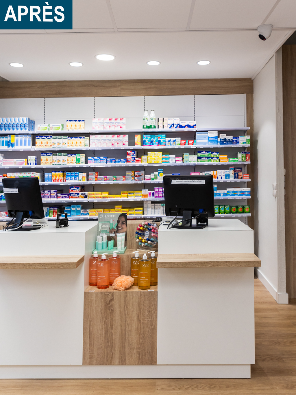 - Rénovation électrique complète et changement de sol pour rendre l’officine beaucoup plus lumineuse.