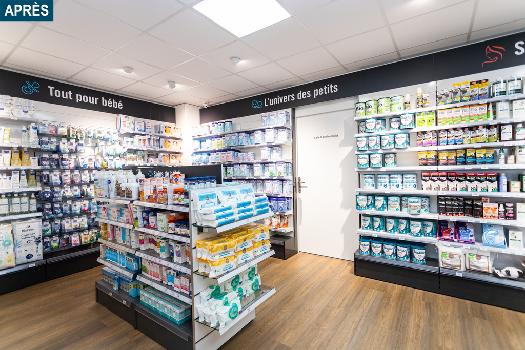 - Rénovation électrique complète et changement de sol pour rendre l’officine beaucoup plus lumineuse.