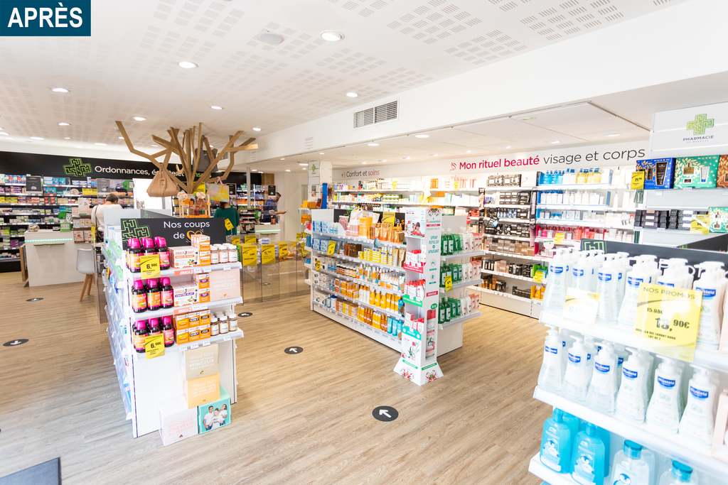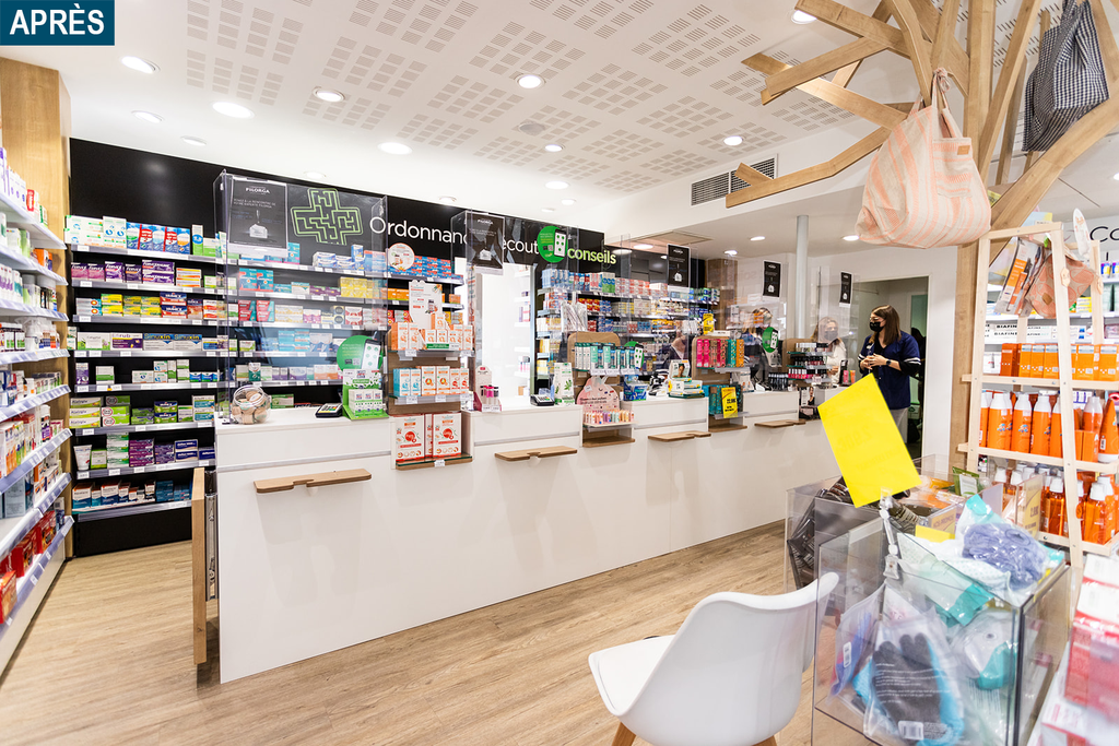 - Modernisations de l'ensemble de l'espace de vente et création de deux vrais espaces confidentiels pour assurer les nouvelles missions pharmaceutiques (vaccination, test, atelier mini-soins ...)